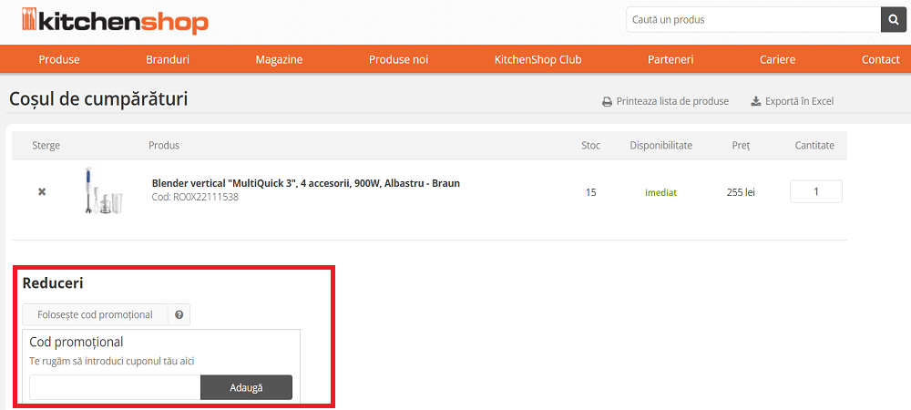 Folosind un cod reducere KitchenShop, puteți economisi la achiziția celor mai noi ustensile și aparate de bucătărie de calitate superioară. Platforma online oferă o selecție variată de produse, de la tigăi, oale și vase de gătit, până la electrocasnice și accesorii de la branduri renumite. În plus, KitchenShop Oferta lunii este o oportunitate constantă de a beneficia de prețuri speciale la produse selectate. Indiferent dacă sunteți un bucătar amator sau profesionist, magazinul vă oferă soluții complete la prețuri accesibile. Aplicați un cod reducere pentru a economisi la fiecare achiziție.