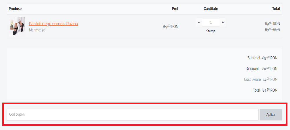 Cuponul de reducere îl puteți folosi în coșul magazinului.