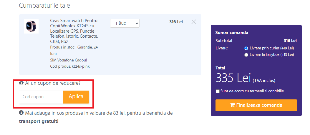Cuponul se aplică direct în coșul de cumpărături pentru a primi…