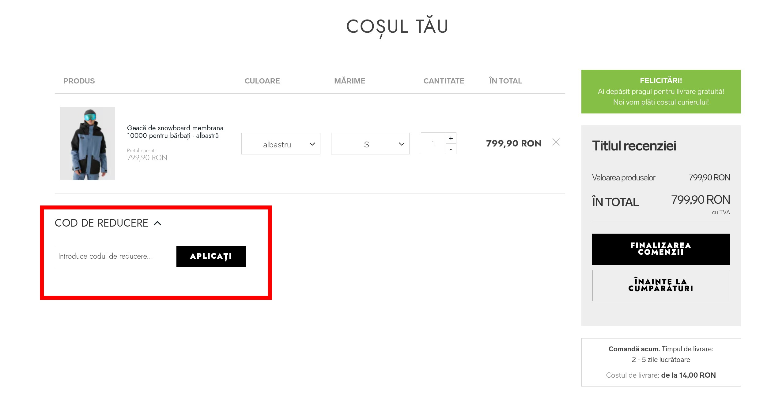Cuponul de reducere îl puteți folosi în coșul magazinului.