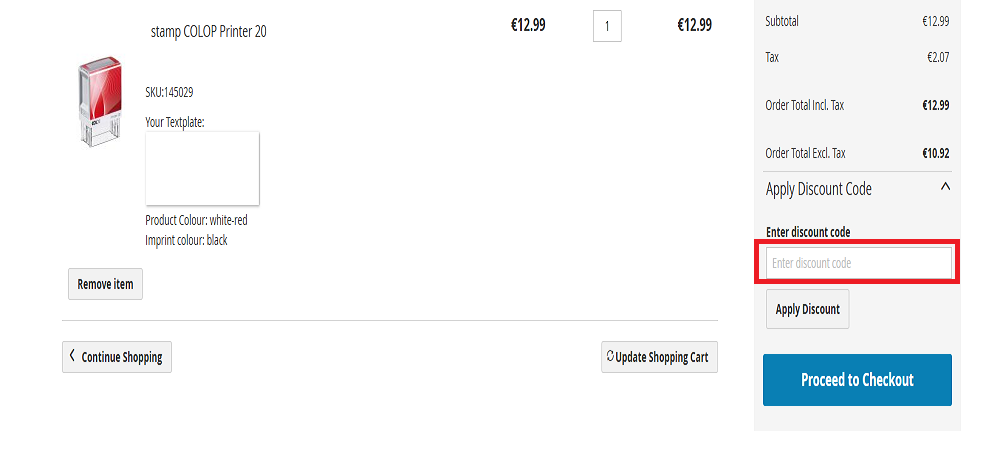 Introduceți codul de reducere în magazin.