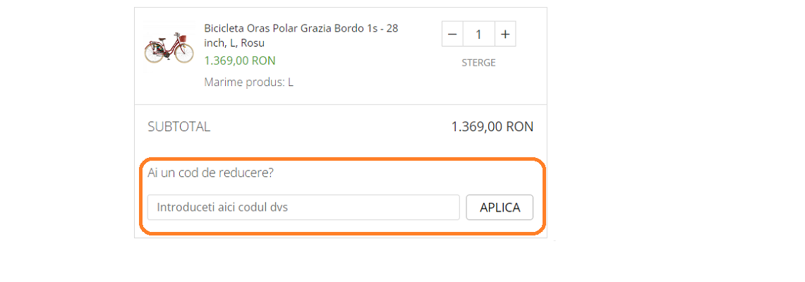 Cuponul se aplică direct în coșul de cumpărături pentru a primi instant reducerea la produsele selectate.