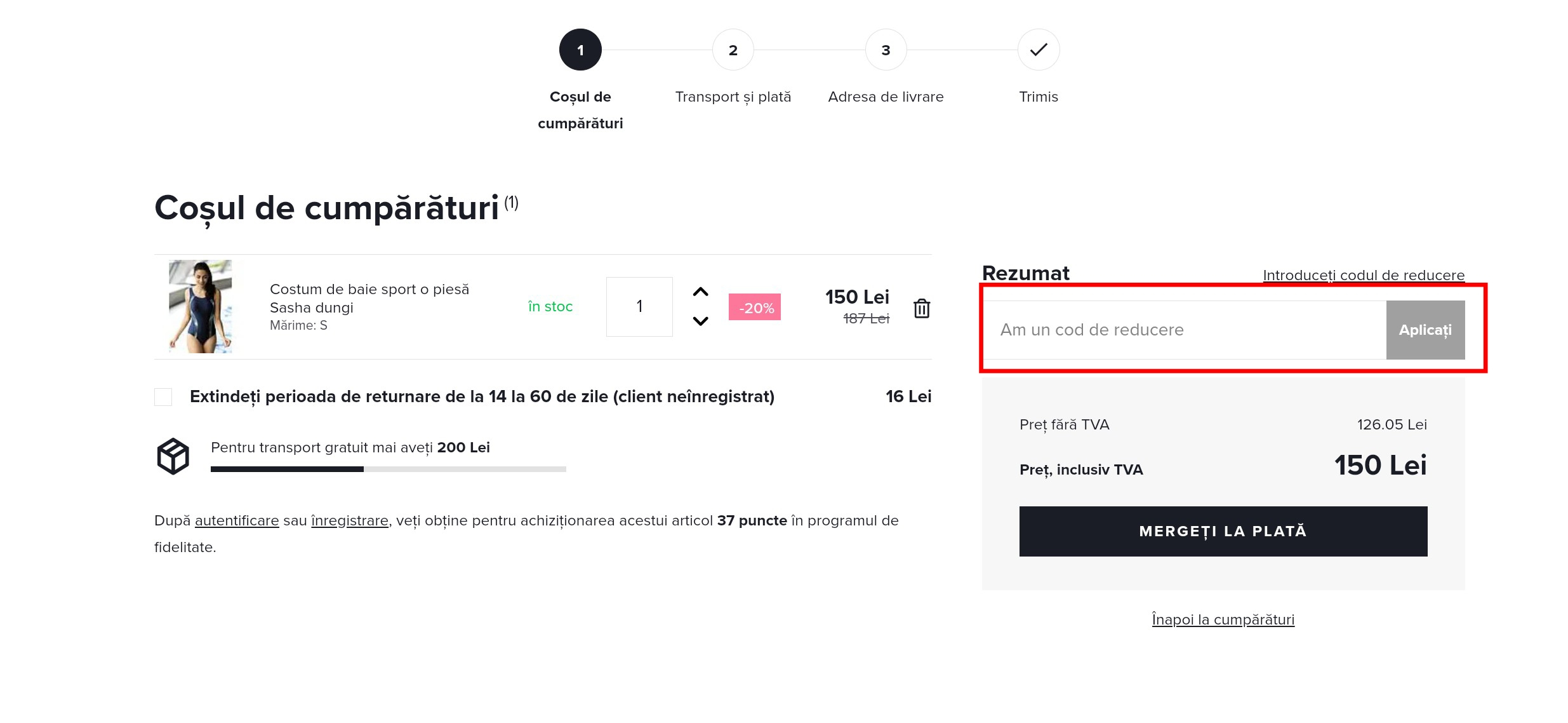 Apăsați pe butonul ”Aplicați”. Dacă voucherul este valabil și îndeplinești condițiile, discountul va fi dedus automat din prețul de achiziție.