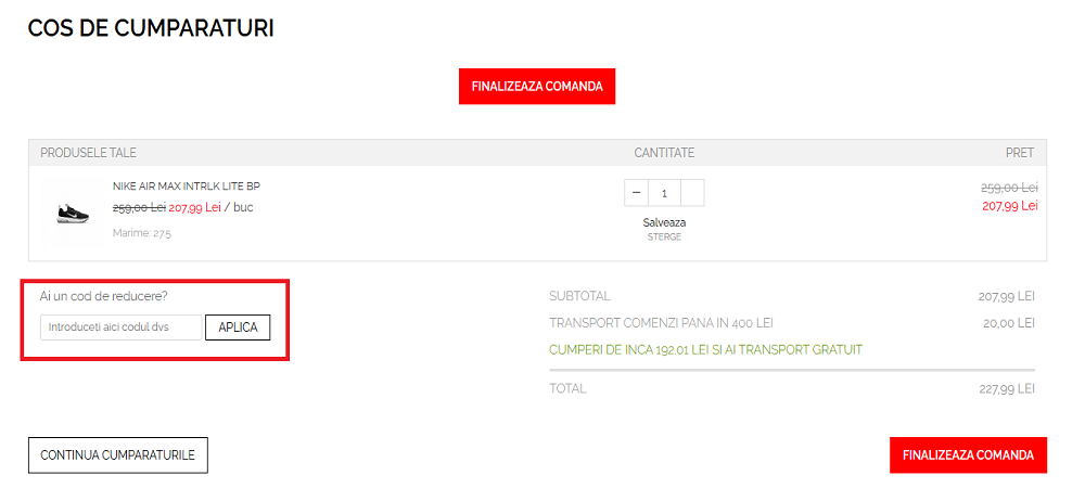 Introduceți codul de reducere în magazin.