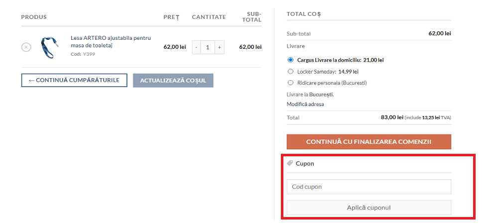 Cuponul de reducere îl puteți folosi în coșul magazinului.