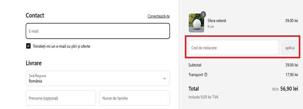 Introduceți codul de reducere în magazin.