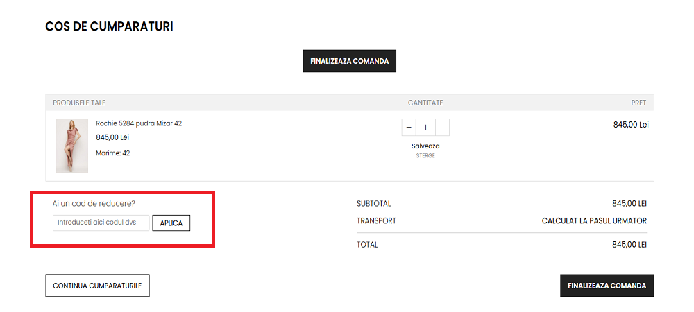 Cuponul de reducere îl puteți folosi în coșul magazinului.