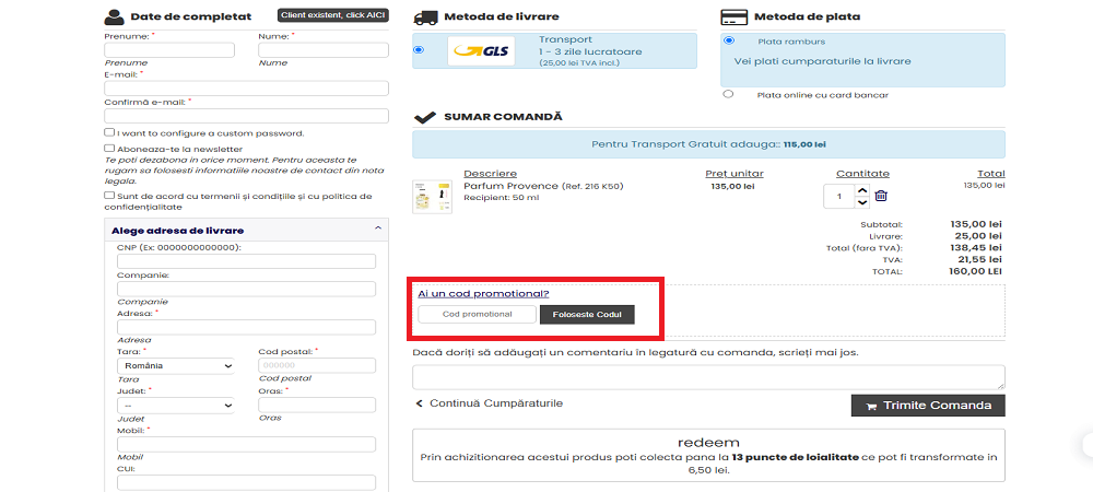 Alegeți articolele pe care doriți să le cumpărați și adăugați-le în coș. Lipiți sai introduceți codul de voucher în chenarul special amenajat. Apăsați pe butonul ”Foloseste Codul”.