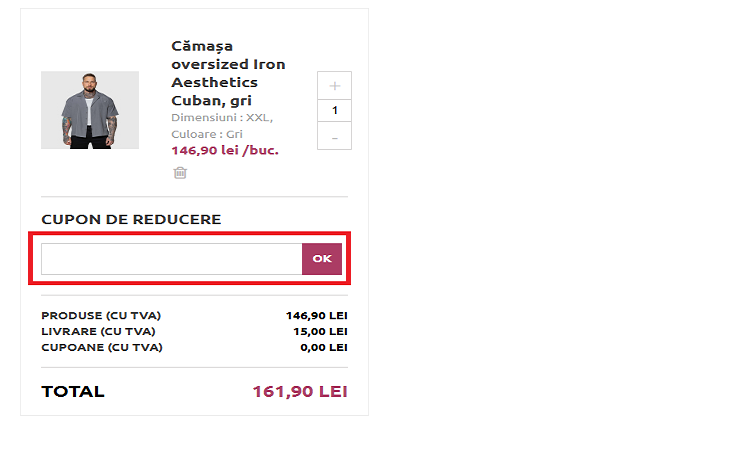 Cuponul se aplică direct în coșul de cumpărături pentru a primi instant reducerea la produsele selectate.