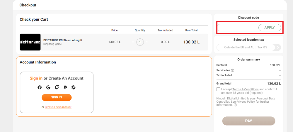 Abonați-vă la newsletter-ul nostru și veți primi un cod de discount pe email. Acest cod este valabil o singură dată pentru fiecare client și nu poate fi combinat cu alte oferte. Veți beneficia de o reducere de 10 % la jocurile pentru PC disponibile în magazinul online Kinguin, atunci când introduceți codul în timpul finalizării comenzii. Folosiți codul de reducere Kinguin pentru a cumpăra jocuri pentru PC la un preț mai mic.