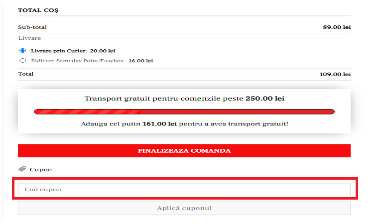 Verificați condițiile de utilizare și aplicați codul de cupon în câmpul destinat codurilor promoționale.
