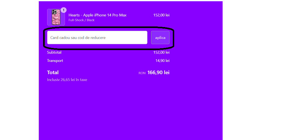 Codul de reducere se aplică în coșul de cumpărături al magazinului