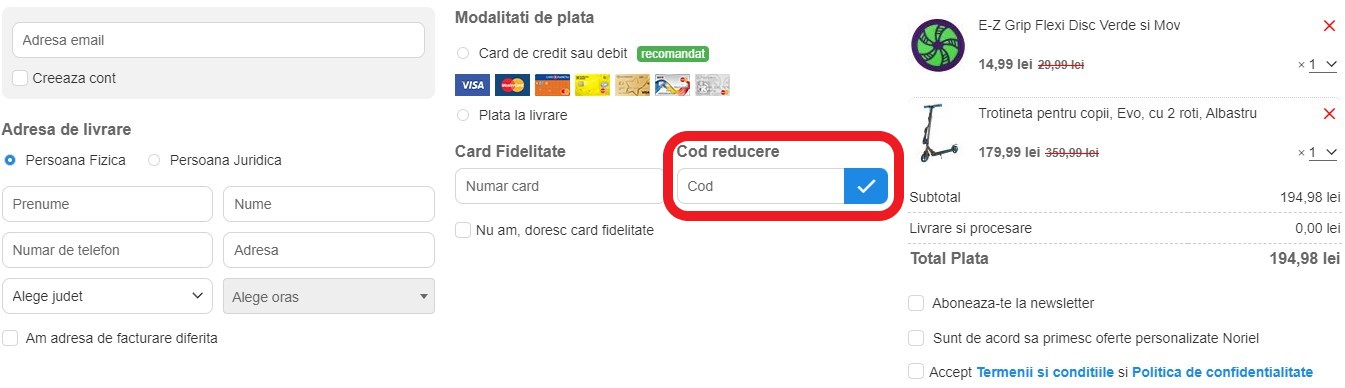 - Abonare la Newsletter: Primești informații despre ofertele și promoțiile exclusive, inclusiv coduri promoționale, prin abonarea la newsletter.