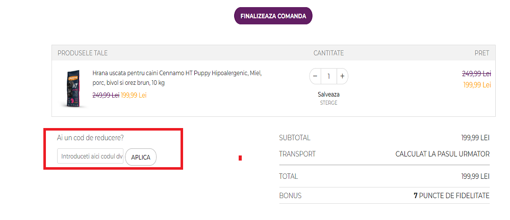 Cuponul se aplică direct în coșul de cumpărături pentru a primi instant reducerea la produsele selectate.