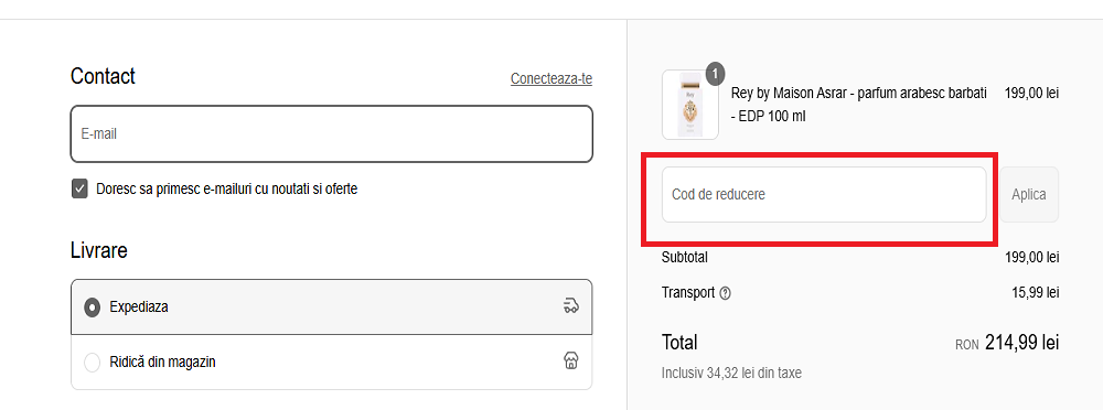 Cuponul se aplică direct în coșul de cumpărături pentru a primi instant reducerea la produsele selectate.
