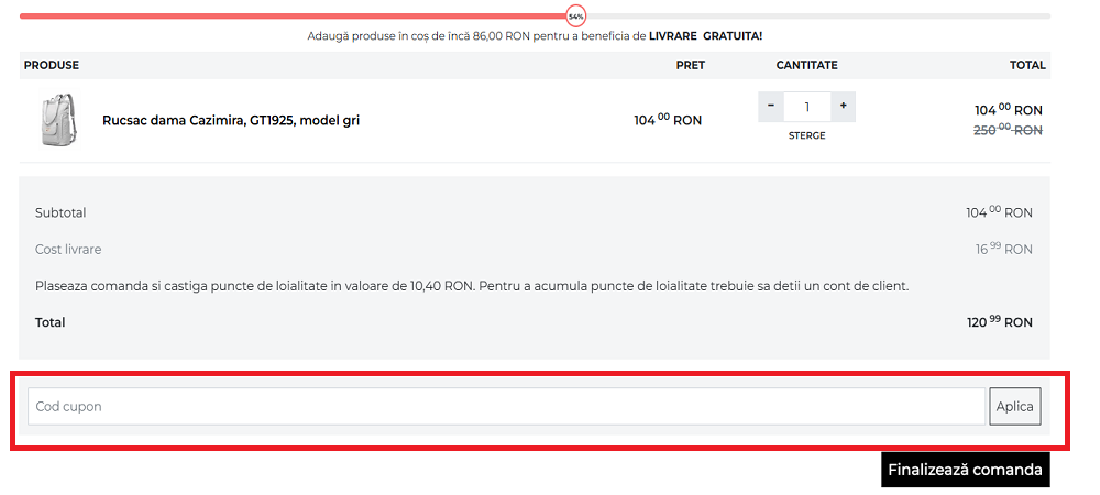 Cuponul de reducere îl puteți folosi în coșul magazinului.