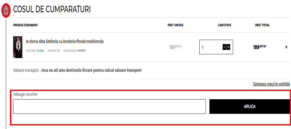 Alegeți articolele pe care doriți să le cumpărați și adăugați-le în coș. Lipiți codul de voucher în chenarul special amenajat. Apăsați pe butonul ”APLICA”.
