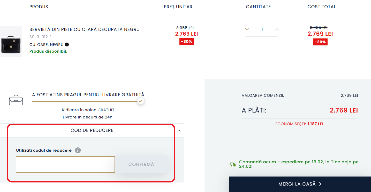 Cuponul de reducere îl puteți folosi în coșul magazinului.