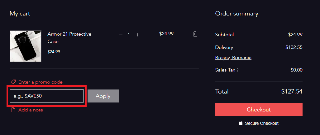 Introduceți codul de reducere în magazin.