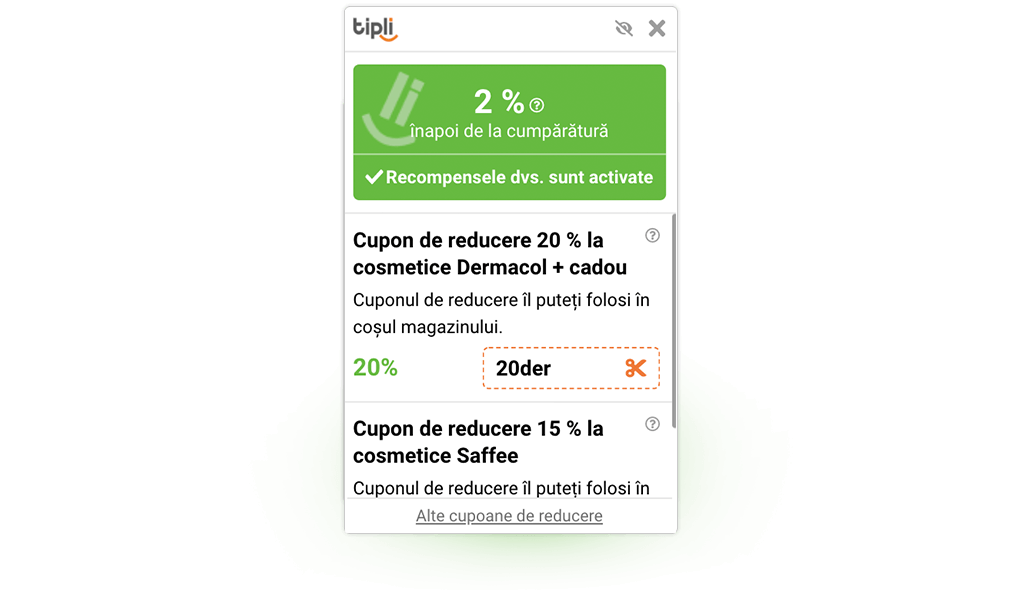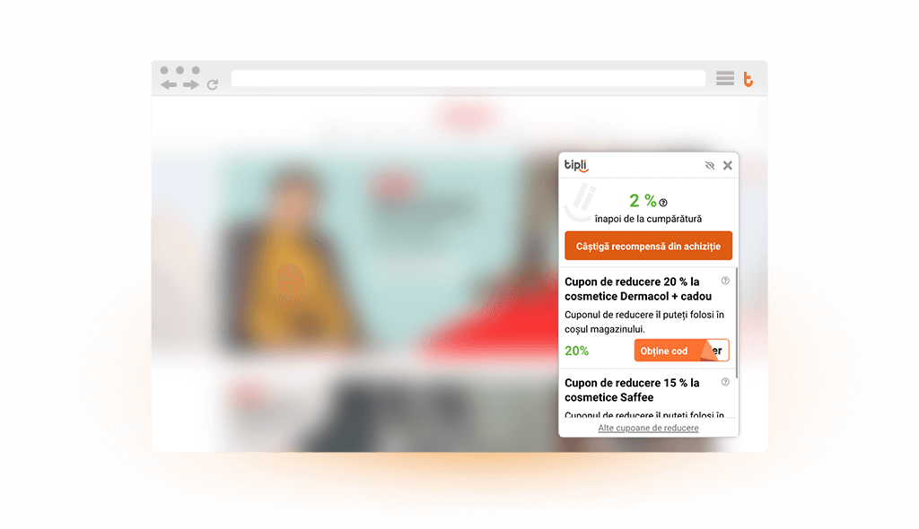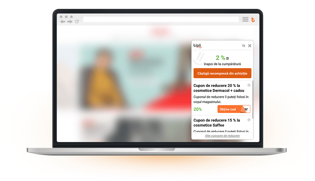 Extensia Tipli în browser îți va aduce aminte de ele direct în timpul vizitei la peste 898 de magazine online. În plus, dacă adaugi pentru prima dată extensia Tipli în browser, primești un bonus de 1 leu.